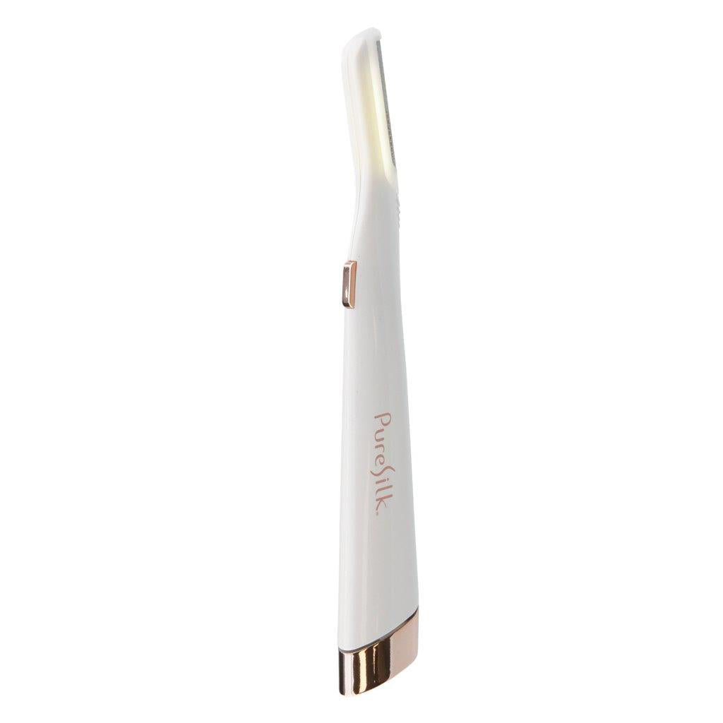 Easily and comfortably remove hair on cheeks, eyebrows, upper lip, sideburns and chin with this Pure Silk Power Derma Plane, which comes with a built-in LED light that provides the best lighting for fine hair removal. It is gentle on all skin types as it removes hair securely while exfoliating to leave your skin soft with no nicks, burns or irritation. This tool is battery powered and requires 1 AAA battery that is sold separately.